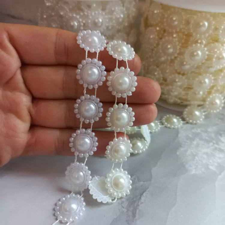 مروارید نواری عرض 1.5 سانت ،رنگ شیری و سفید ،بصورت متری
