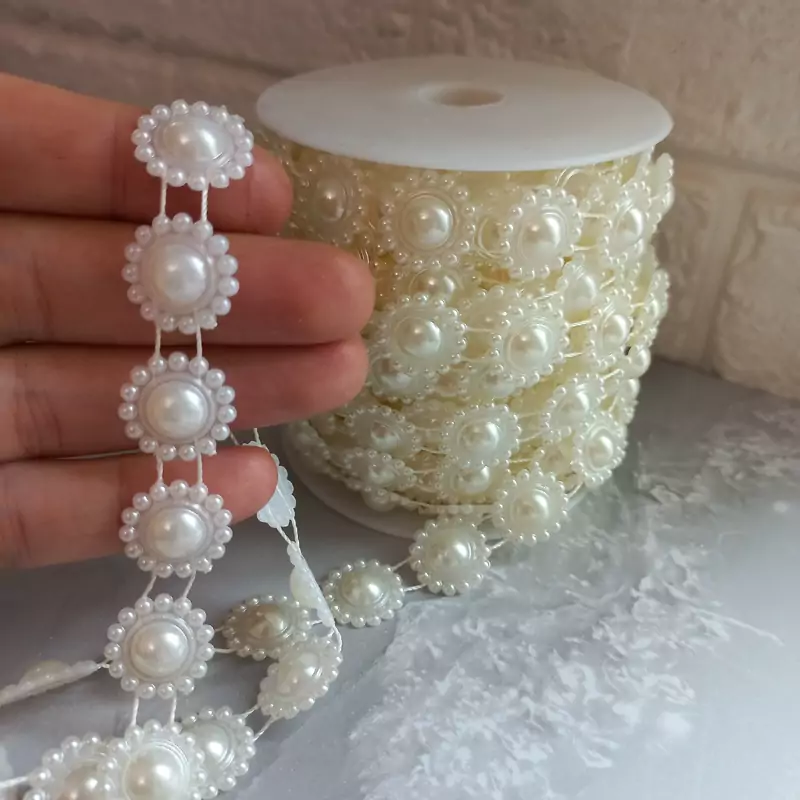 مروارید نواری عرض 1.5 سانت ،رنگ شیری و سفید ،بصورت متری