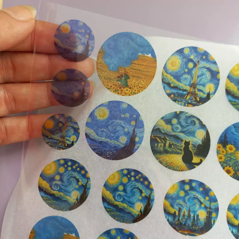 ترنسفر طلقی وبرچسبی، منظره رنگی گرد ،سایزهای،2.3و3.3و3.8 سانت