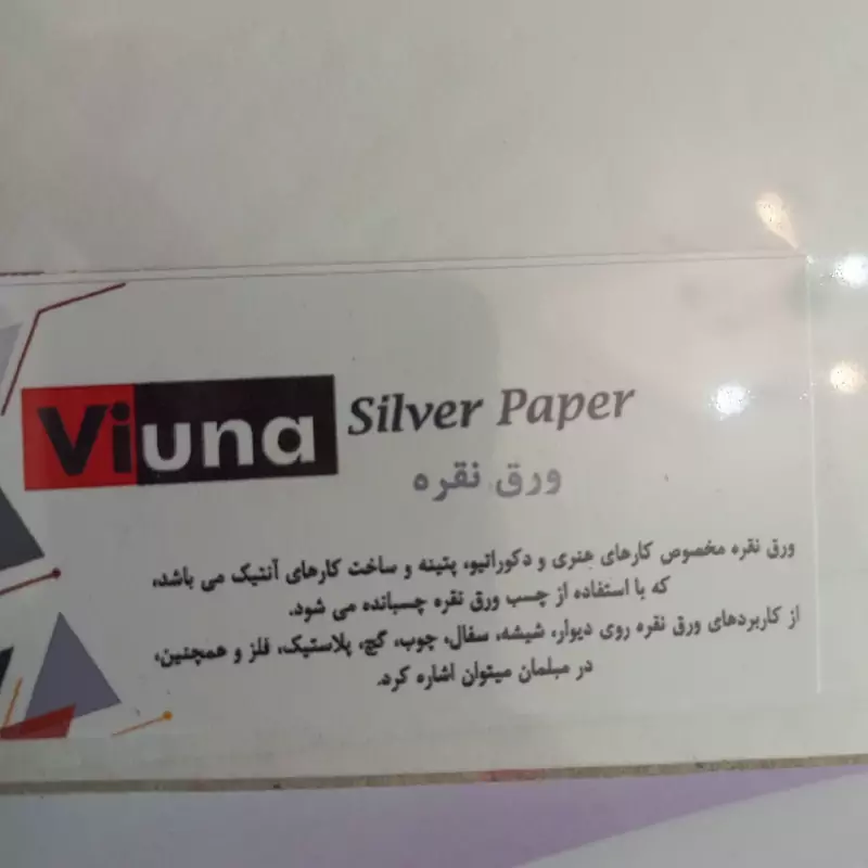 ورق نقره مخصوص کارهای هنری و دکوراتیو ،پتینهو ساخت کارهای آنتیک که با استفاده از چسب ورق طلا چسبانده میشود،کاربرد های ورق طلا و نقره روی دیوار،شیشه،سفال ،چوب ،گچ،پلاستیک،فلز ،و همچنین در مبلمان میتوان اشاره کرد .