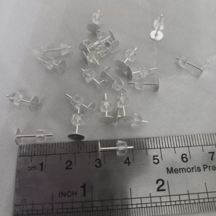 گوشواره فلزی نقره ای به همراه پشت گوشواره ژله ای بسته 10 جفتی