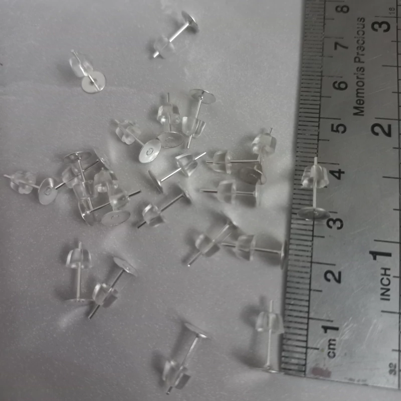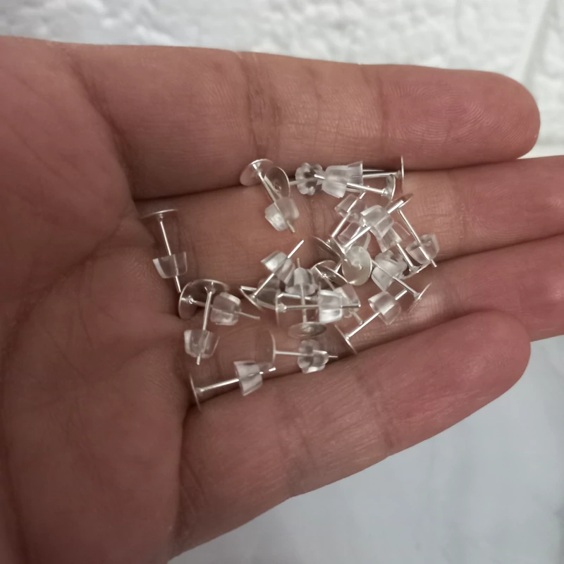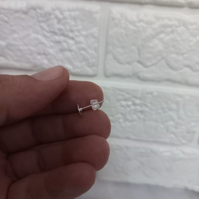 گوشواره فلزی نقره ای به همراه پشت گوشواره ژله ای بسته 10 گرمی