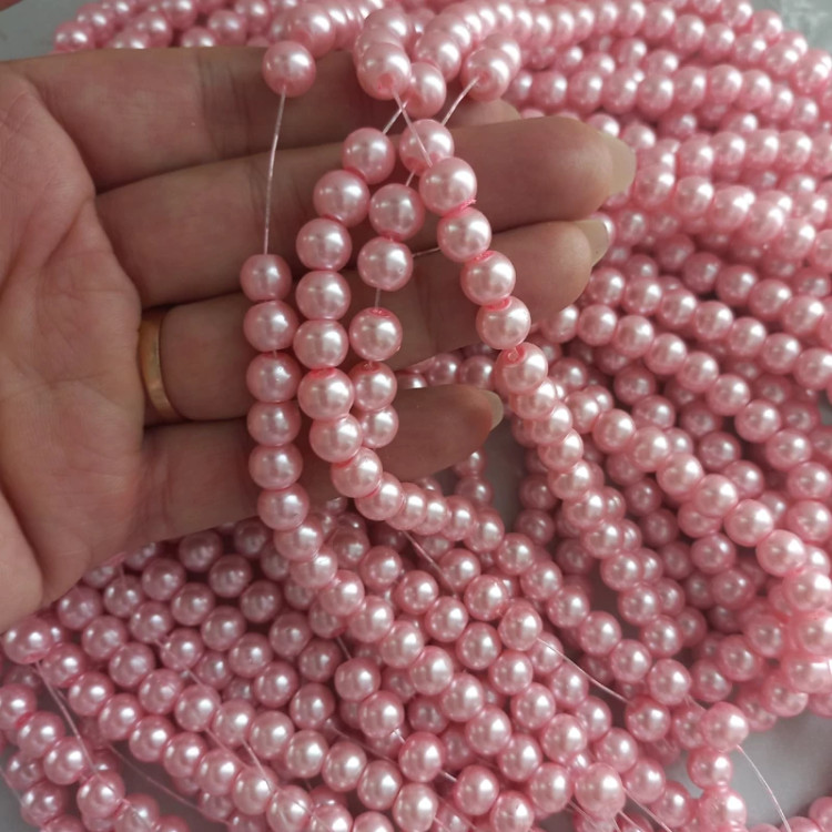 مروارید سنگی رنگ صورتی ،سایز8،بصورت ریسه 107عددی