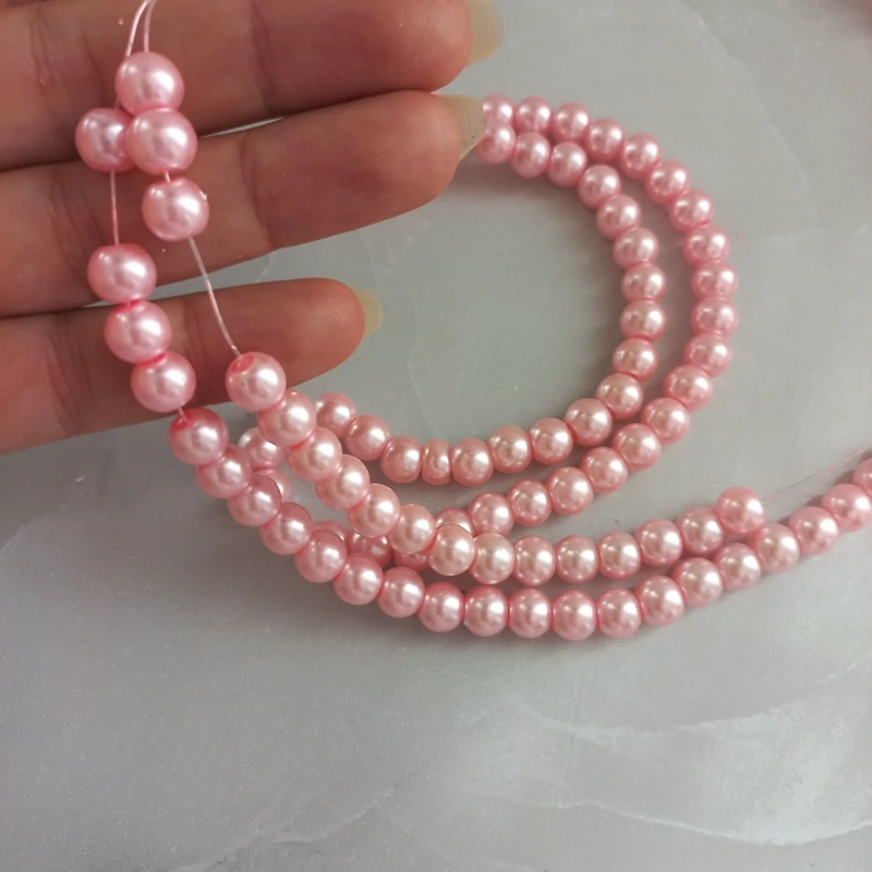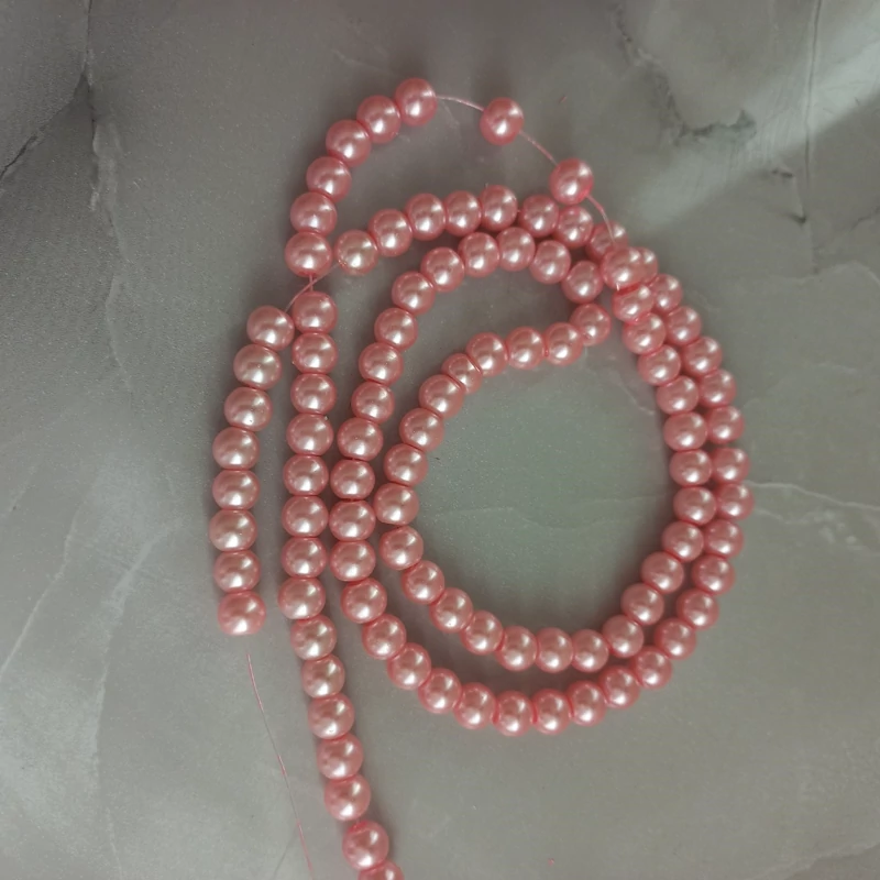 مروارید سنگی رنگ صورتی ،سایز8،بصورت ریسه 107عددی
