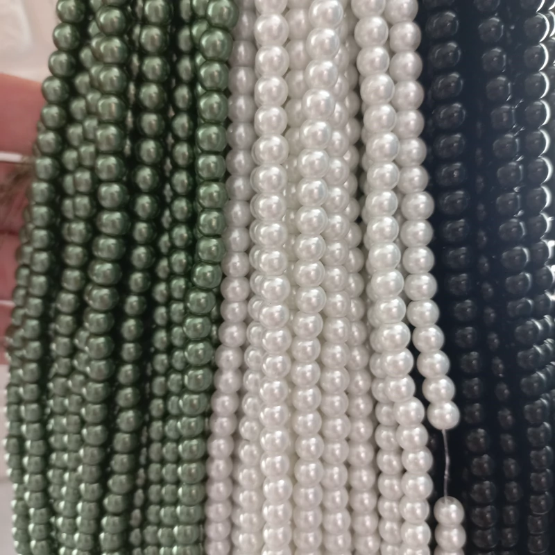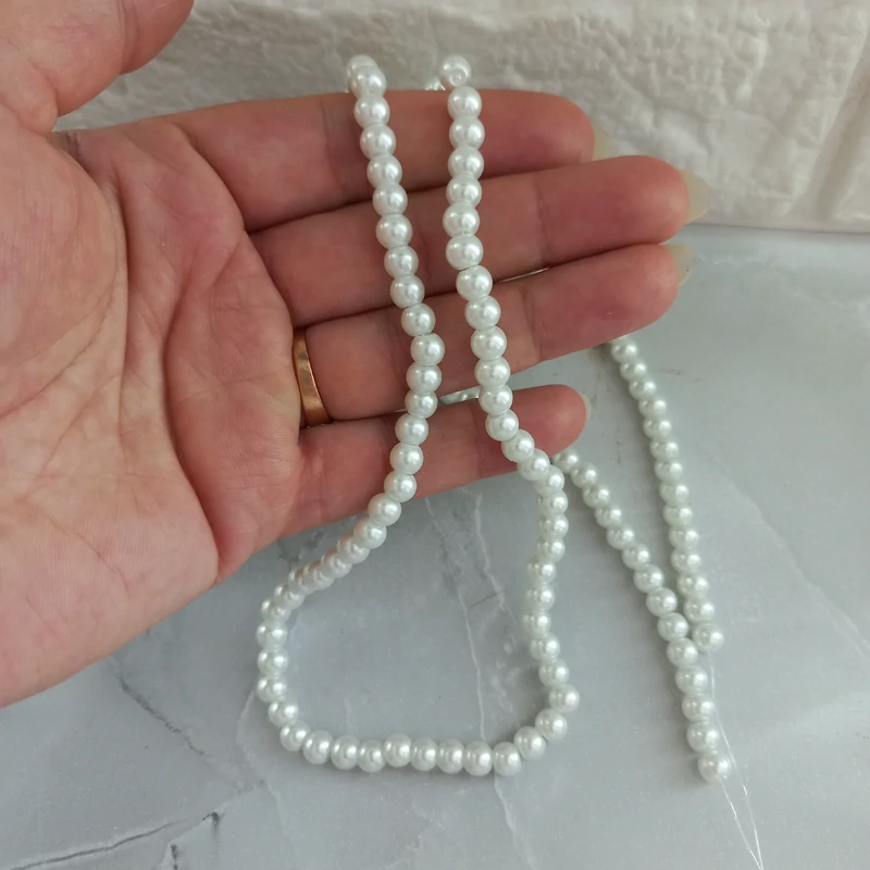 مروارید سنگی رنگ سفید ،سایز 6،بصورت ریسه 144 عددی