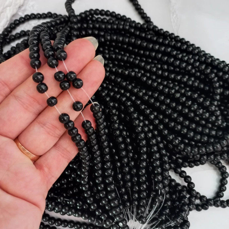 مروارید سنگی رنگ مشکی ،سایز6،بصورت ریسه ای 144 عددی