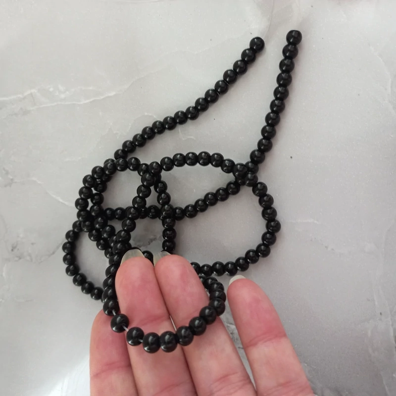 مروارید سنگی رنگ مشکی ،سایز6،بصورت ریسه ای 144 عددی