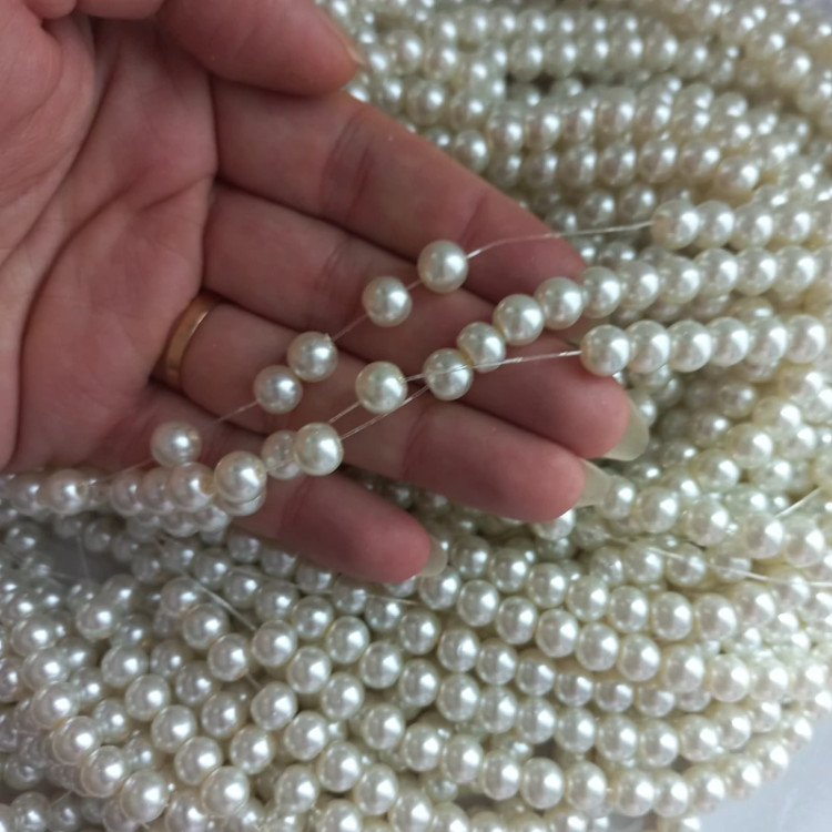 مروارید سنگی رنگ نباتی،سایز 8،بصورت ریسه ی 107 عددی