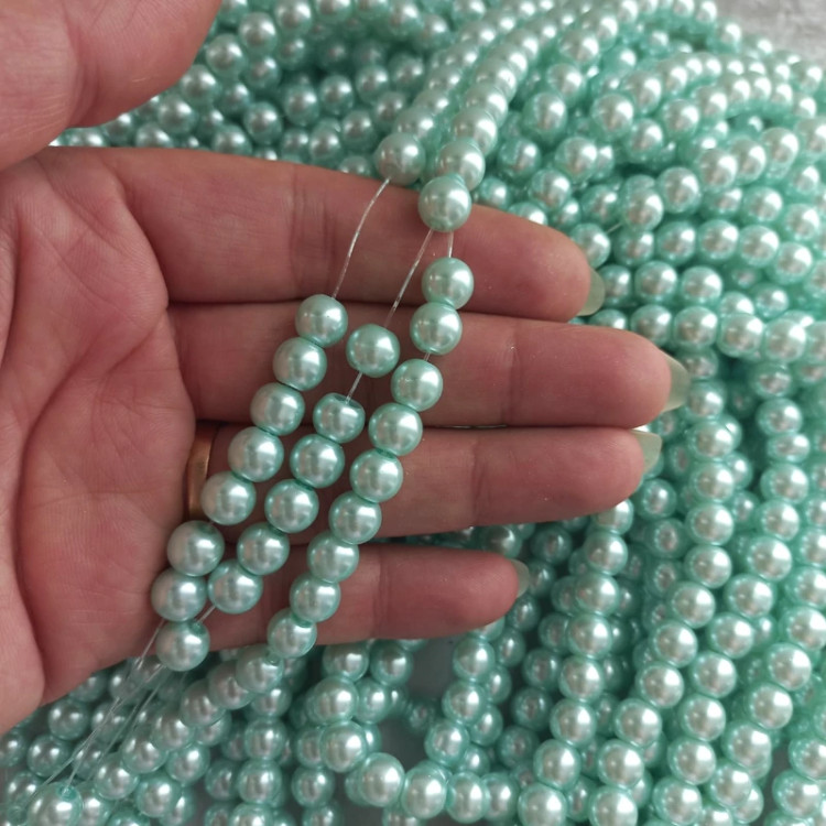مهره سنگی رنگ سبزپاستیلی،سایز8،بصورت ریسه 107 عددی