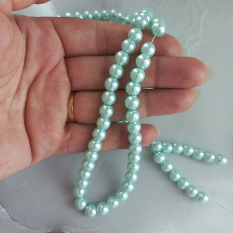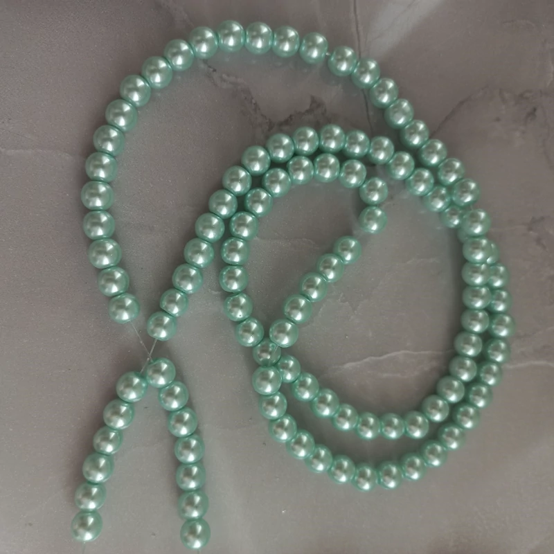 مهره سنگی رنگ سبزپاستیلی،سایز8،بصورت ریسه 107 عددی