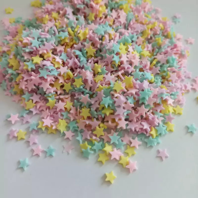 فیمو چیپسی طرح ستاره رنگی با وزن 10 گرم خالص بدون بسته بندی یا کیفیت عالی و جنس وارداتی با قیمت مناسب و کیفیت عالی برای کارهای رزین و خمیر سازی